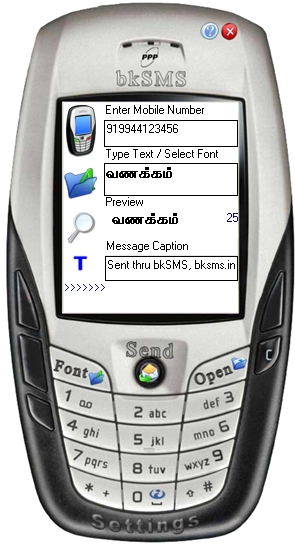 bkSMS Picture Message Sender software enables you to type a text message in any language and converts it into a Picture Message and sends it to any mobile number. It also lets you to use any existing images (.jpg, .bmp, .gif) and sends as a picture message (picture SMS) to any mobile number.